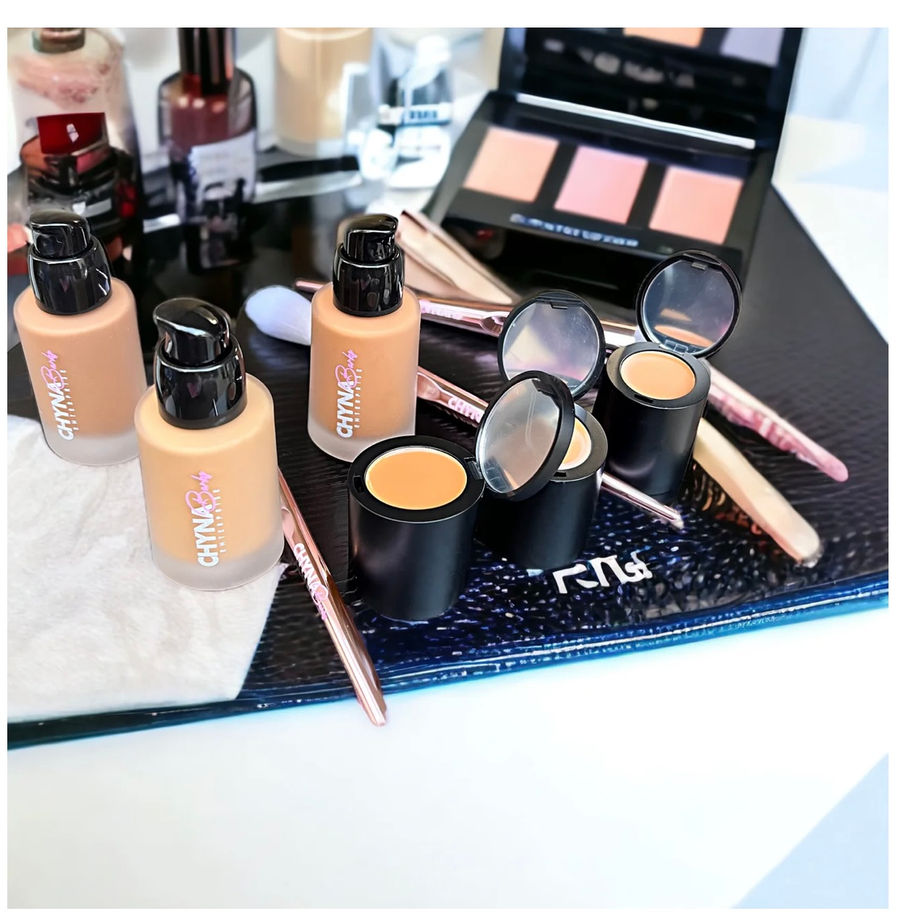 - Apply Foundation using brush or beauty blender , Applying foundation first creates an even base to reduce overall redness, discoloration and minor blemishes.